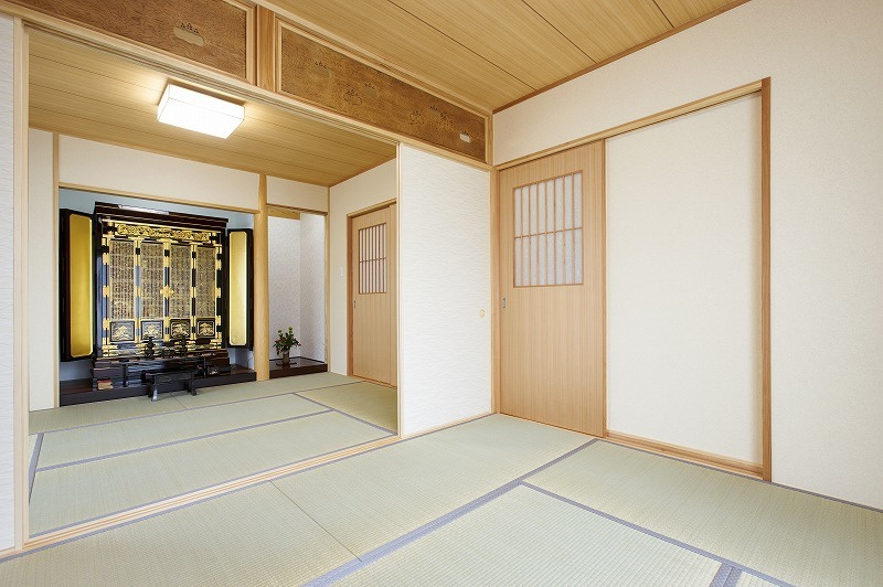6帖二間続きの和室は大勢の来客にも対応でき、広めの収納の備えています。