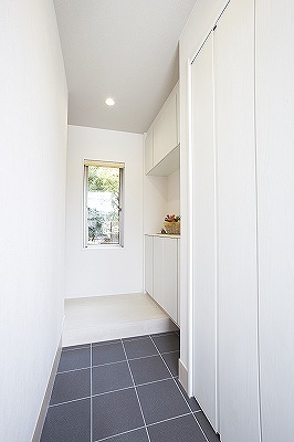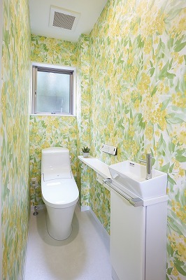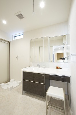 洗面脱衣室は奥様の希望でランドリースペースを兼ねて広めになっています。