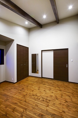 寝室前にはワンちゃんのためのウッドデッキを設けたりと愛犬にとっても、優しい家が完成しました。