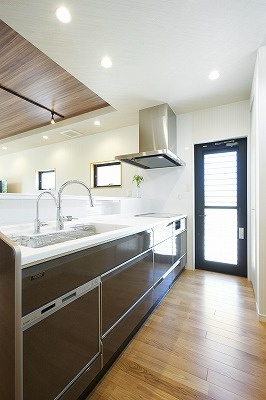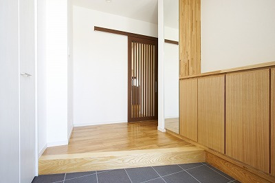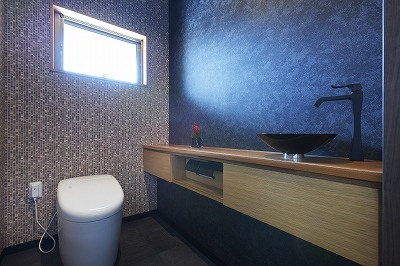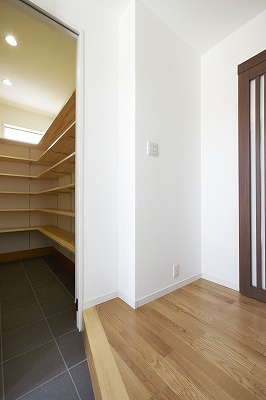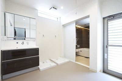 ご主人の希望で玄関を通らず人工芝を敷いた土間から直接脱衣所へ入れ、広々とした浴室でゆったりできます。