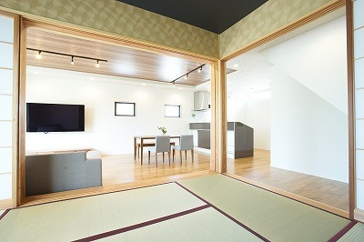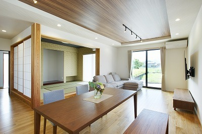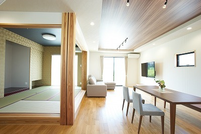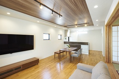 1階の家族の集まるリビングはリラックスできるモダンな空間に。