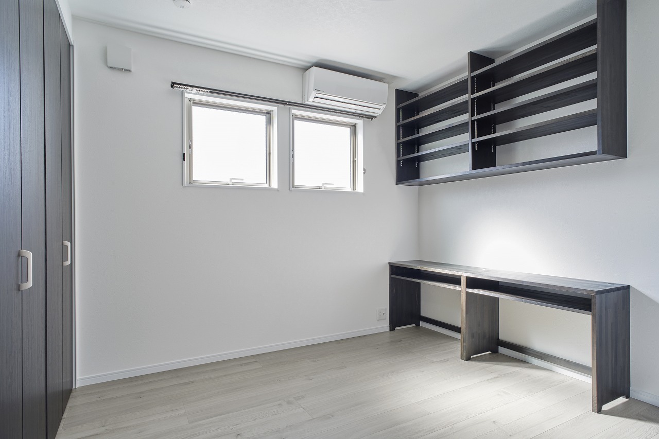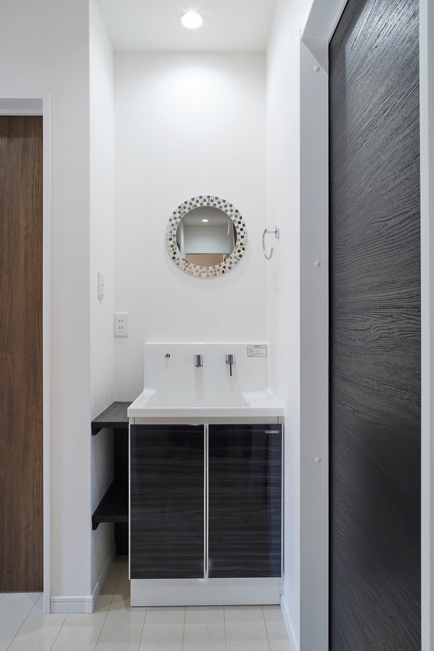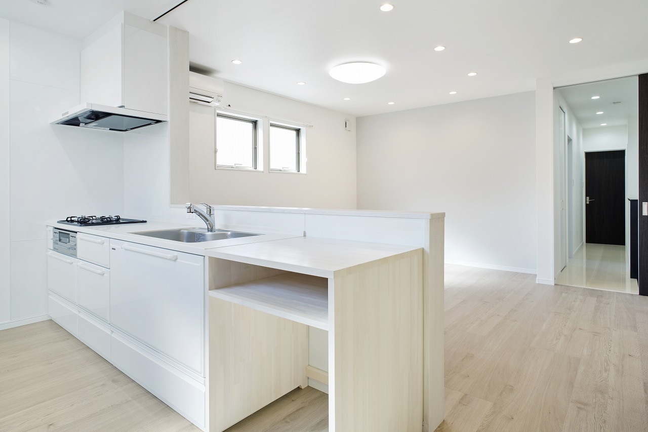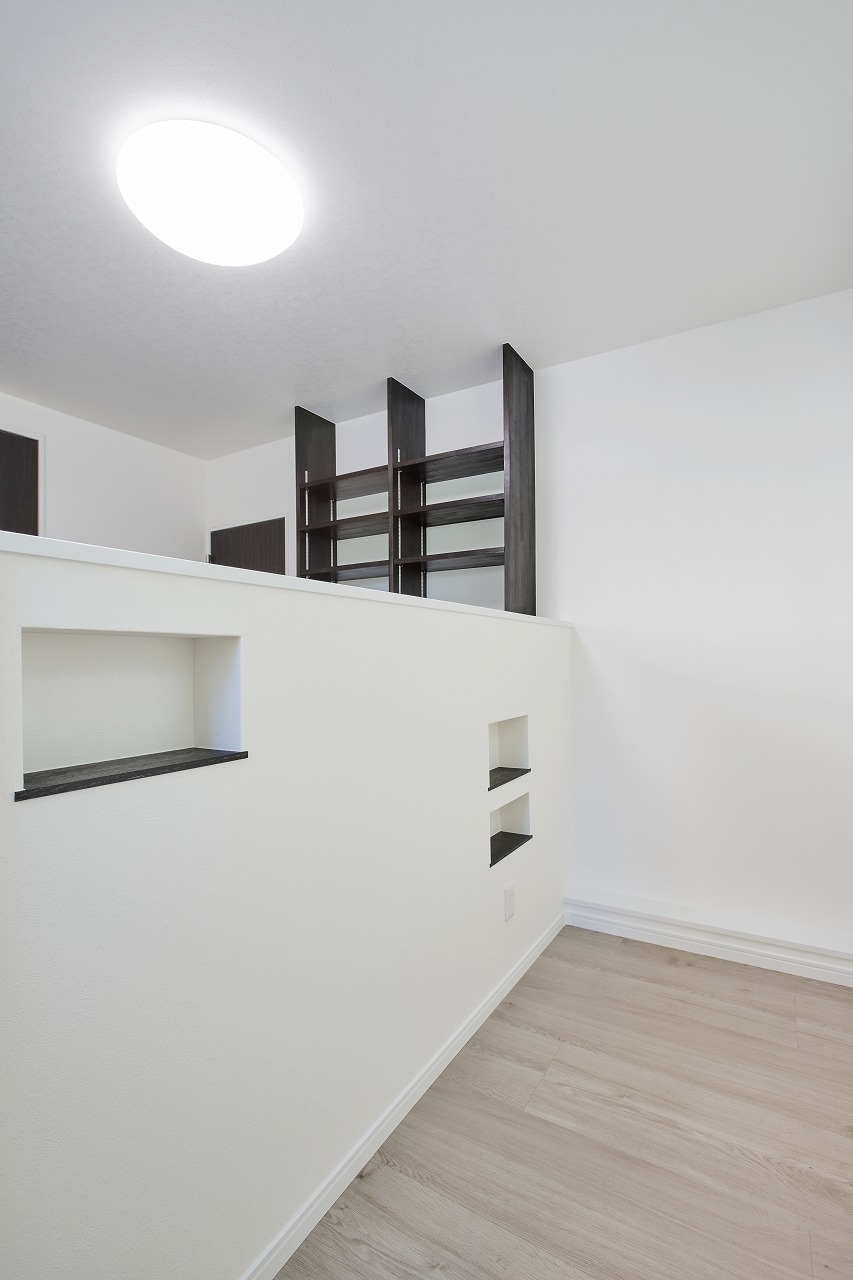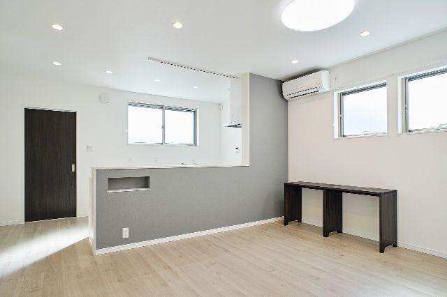 ツートンカラーの外観、室内も2世帯が心地よく過ごせるナチュラルモダンスタイル。市内中心部にありながら採光や風通しを考慮し快適に暮らせる家となりました。