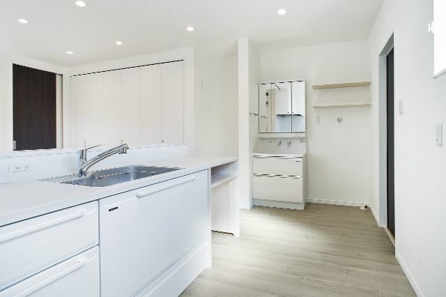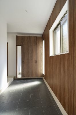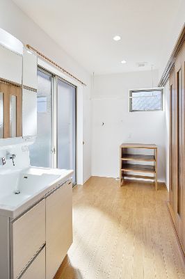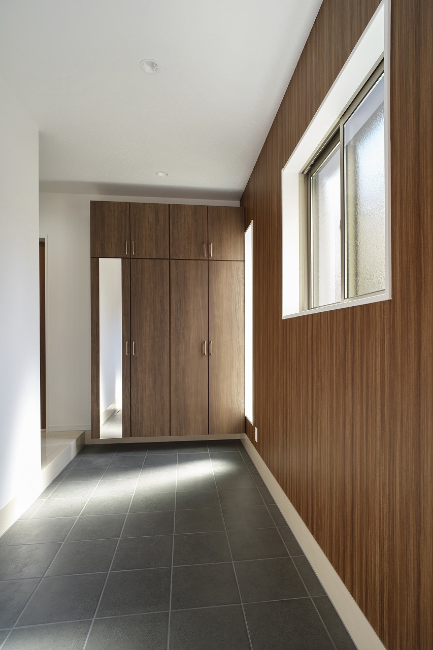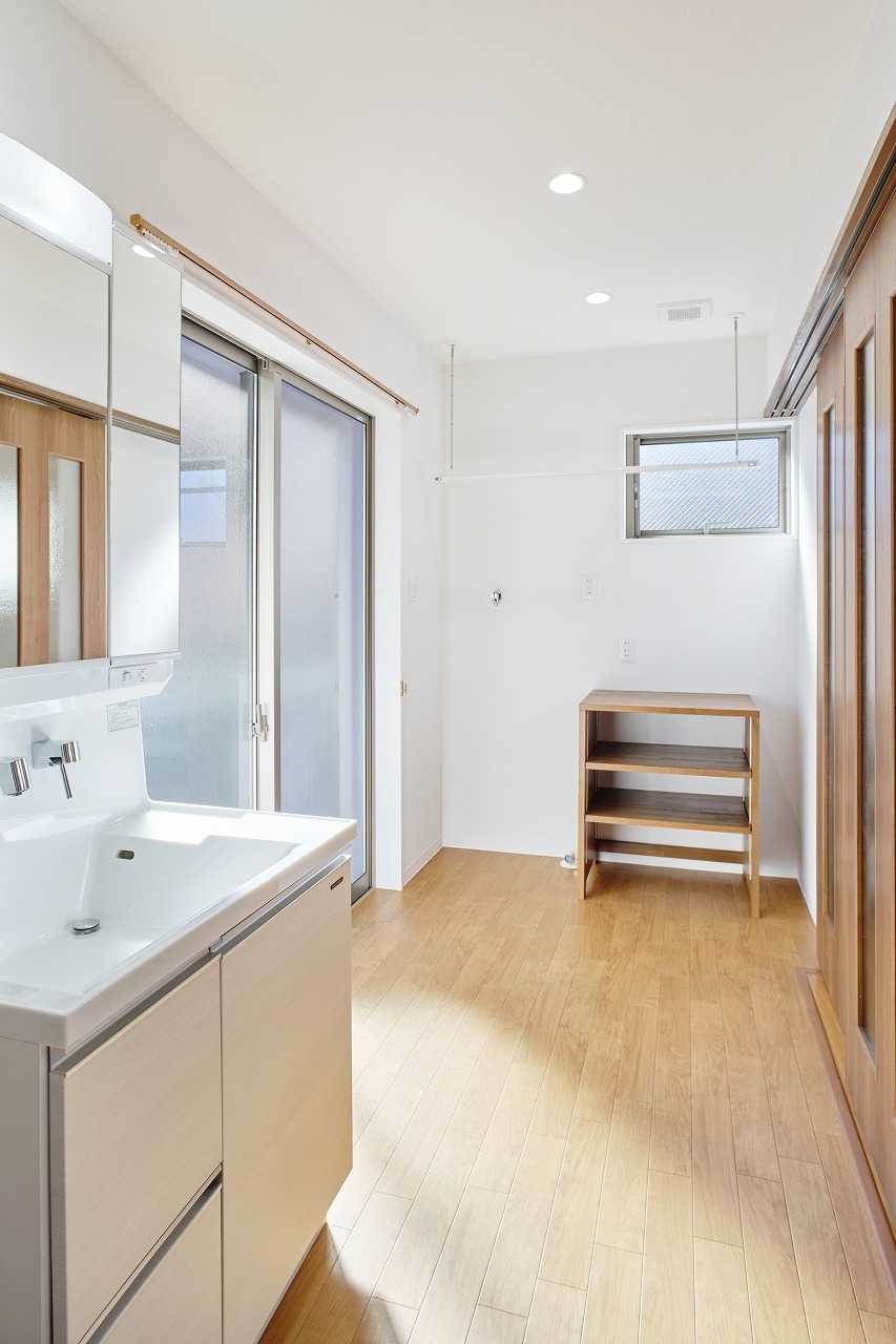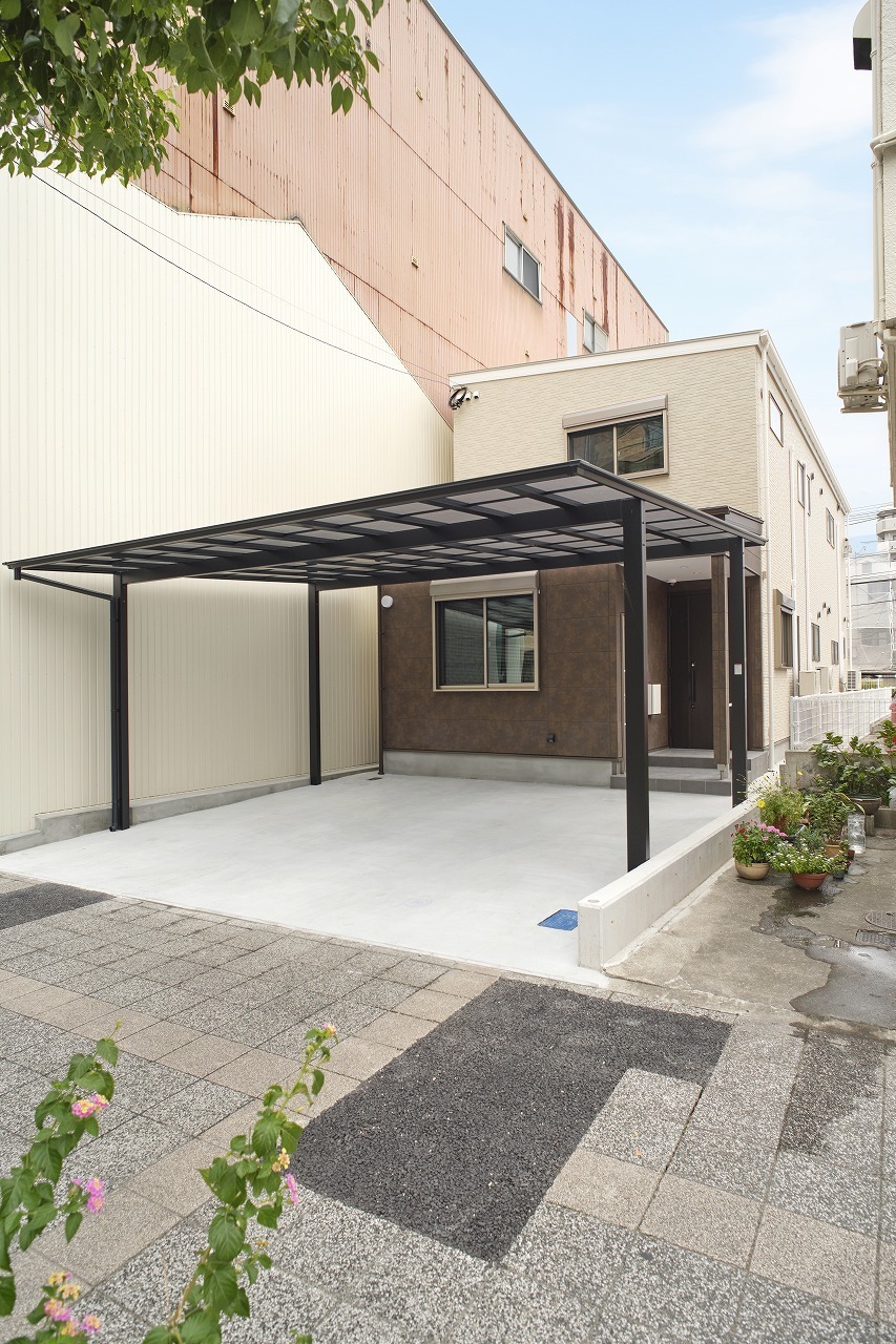 ツートンカラーの外観、室内も2世帯が心地よく過ごせるナチュラルモダンスタイル。市内中心部にありながら採光や風通しを考慮し快適に暮らせる家となりました。