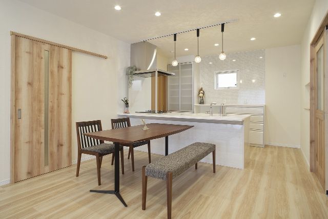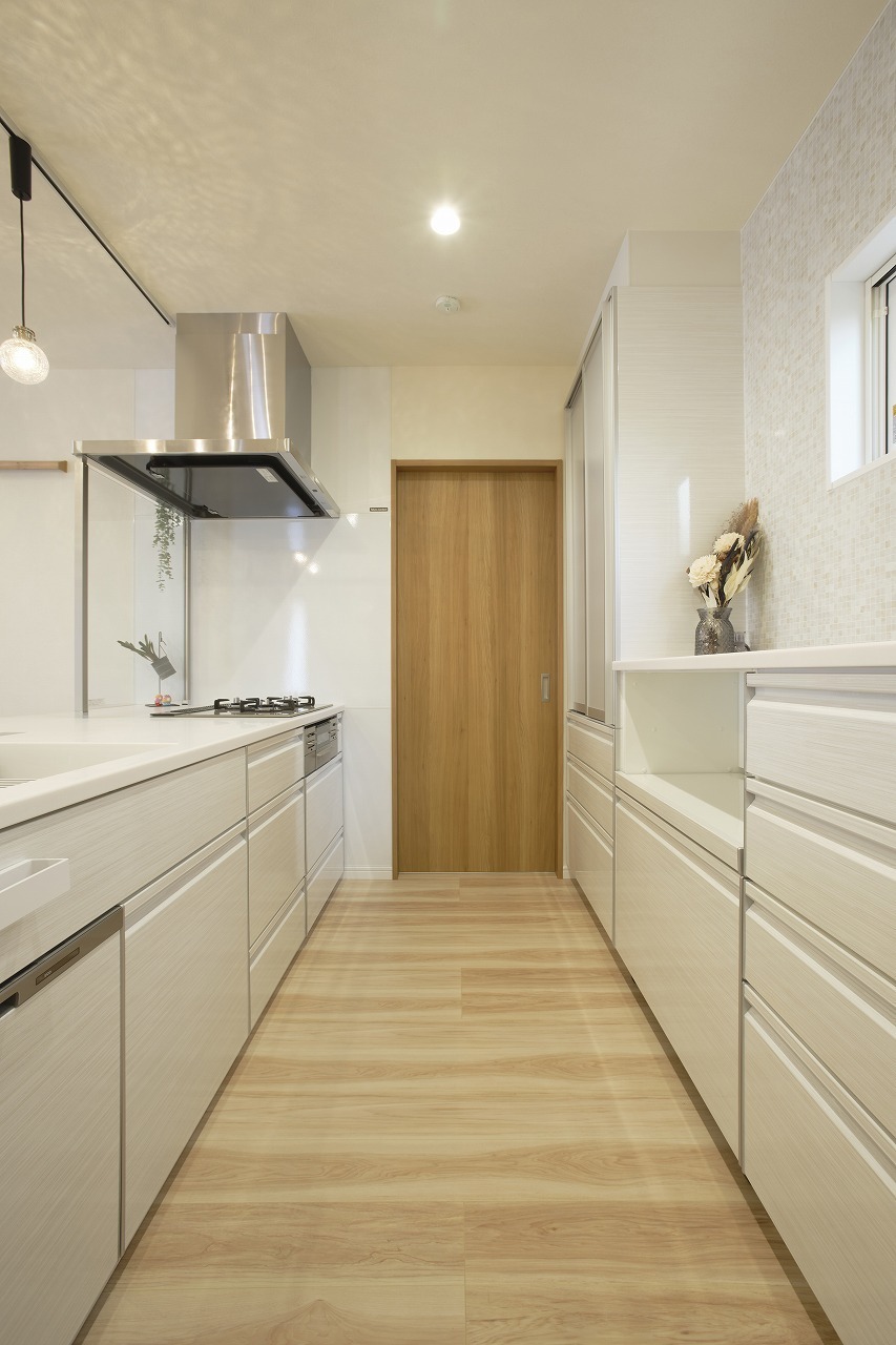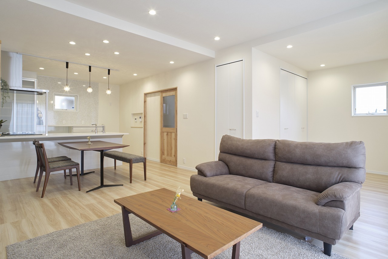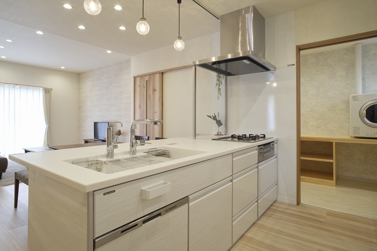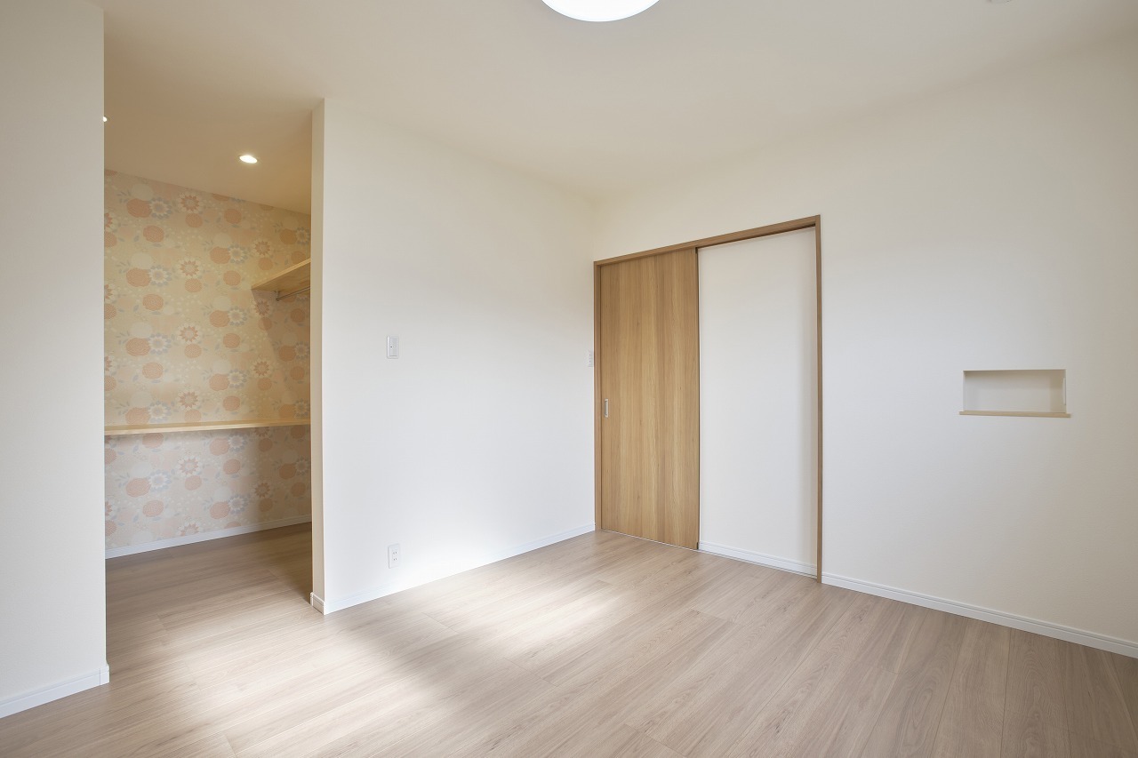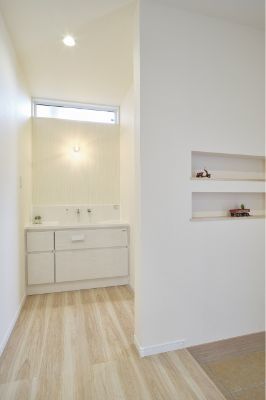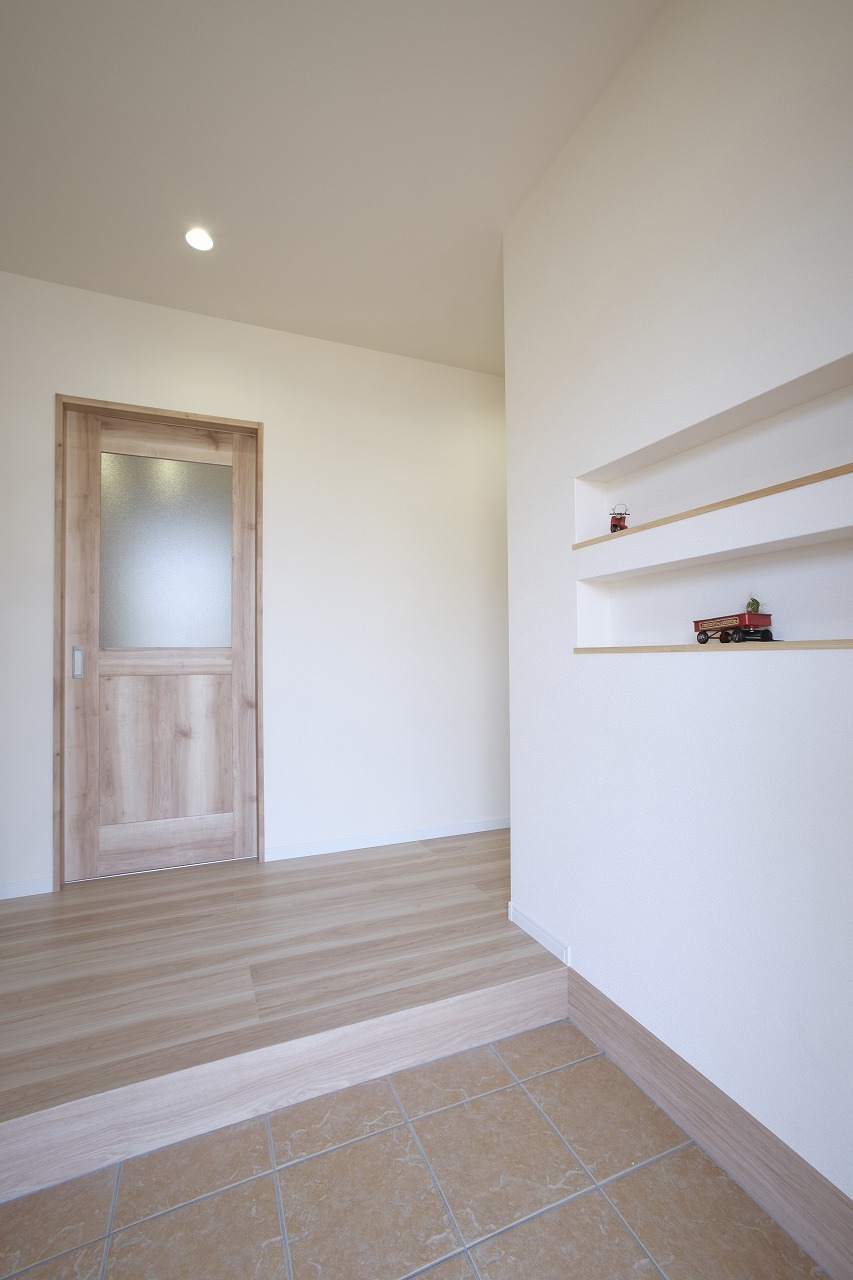 子育て家族に便利な使いやすい回遊動線の中には色々飾れるニッチ等おしゃれなスペース、子供の成長に合わせて家具収納をプランニングしました。