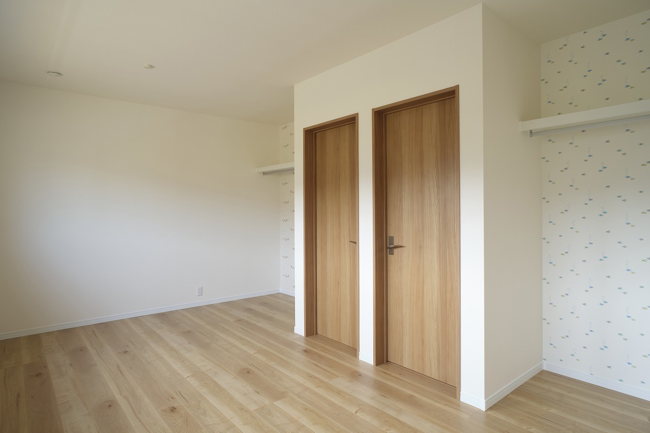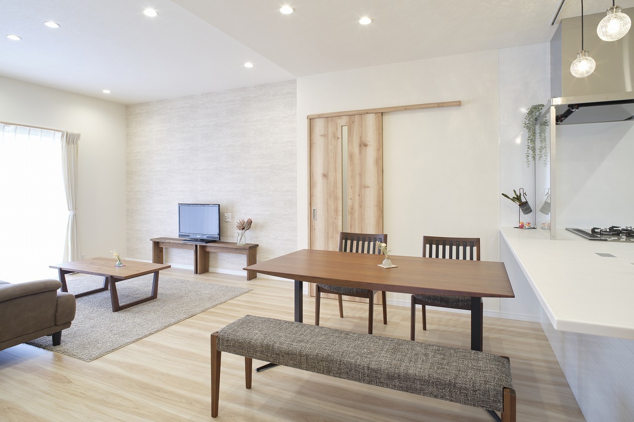 奥様こだわりの塗り壁仕上げのフレンチな外観♪室内はアクセント壁もあるシンプル&ナチュラル仕様となっています。